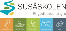 Læs mere om skolen på skolens hjemmeside: https://susaaskolen.aula.dk og kig forbi Facebook for indblik i vores aktive skole: https://kortlink.dk/2samb